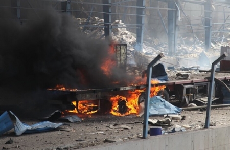 وأوضح مراسل التلفزيون الرسمي في المكان "تمت السيطرة على الحريق لكن لم يخمد بعد" فيما يتصاعد دخان كثيف أسود من ورائه.