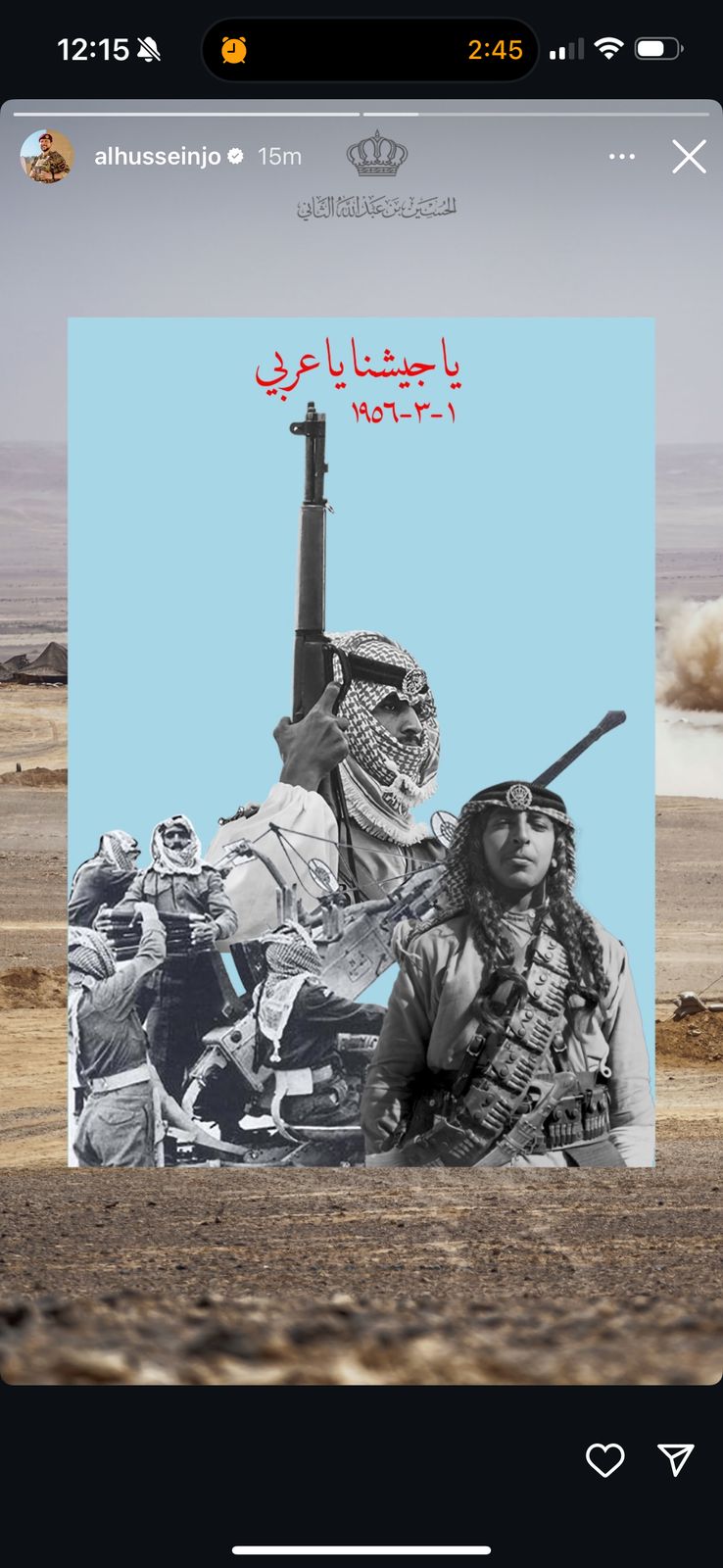 ونشر سموه عبر حسابه على "إنستغرام” صورة تعبّر عن هذه المناسبة الوطنية، تحمل شعار "يا جيشنا يا عربي”.