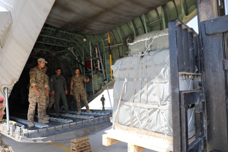 وتمت الإنزالات بواسطة طائرات من طراز C130 تابعات لسلاح الجو الملكي الأردني والقوات الجوية لدولة الإمارات، كانت محملة بـ 25 طنا من المساعدات الغذائية والاحتياجات الإنسانية.