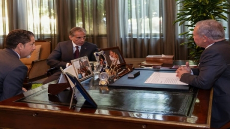 نشر الديوان الملكي الهاشمي، الثلاثاء، صورة من اجتماع لجلالة الملك عبدالله الثاني، برئيس الوزراء جعفر حسان، بحضور مدير مكتب جلالته، علاء البطاينة.