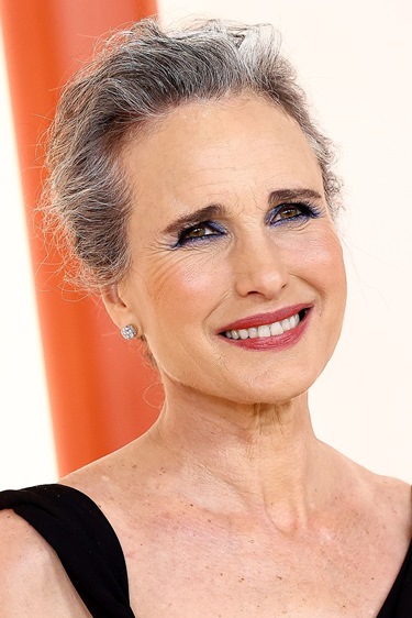 ارتدت أندي ماكدويل شعرها المجعد الذي تم تصفيفه بنعومة ناعمة مع شعر متطاير مضيفة بعض الرومانسية الغريبة. يجمع مكياجها الجميل بين مكياج العين النيلي وأحمر الشفاه الوردي، مما يضفي بعض البريق المرح في المظهر