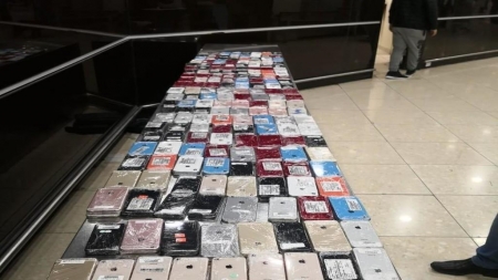 أحبطت كوادر الجمارك الأردنية العاملة في مركز جمرك مطار الملكة علياء الدولي الركاب عملية تهريب أجهزة خلوية حيث تم ضبط المهربات في حقيبة تعود لأحد المسافرين وجد بداخلها ما يقارب (404) جهاز خلوي.