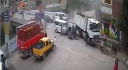 وتحولت السيارة الصغيرة إلى قطعة خردة تسيل منها الدماء وتهشم الجزء الأمامي للميكروباص ولم تتأثر سيارة النقل الثقيل، فيما هرع المارة وأصحاب المحال التجارية لإنقاذ الضحايا، وفقا لوسائل إعلام مصرية.
