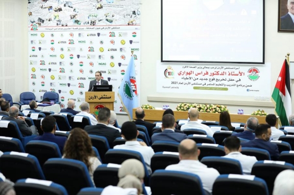وكان الأستاذ الدكتور عبدالله البشير مدير عام مستشفى الأردن قد رحب برعاية وزير الصحة الدكتور فراس الهواري لهذا التخريج ( ما يزيدنا في مستشفى الاردن اصراراً وعزيمة على مواصلة هذا النهج في الإرتقاء وتطوير برامج التدريب والتعليم الطبي المستمر ) مشيراً إلى أن مستشفى الأردن بإمكاناته الطبية والتعليمية إستطاع أن يحقق إنجازات عديدة في مجال الخدمات الطبية المتكاملة وتقديم الرعاية الطبية الشاملة وتحقيق مستويات متميزة بالسياحة العلاجية إضافة لدوره الكبير في مجال التعليم الطبي حيث رفد السوق الأردني والعربي بمئات الأطباء الشباب بمختلف التخصصات بعد حصولهم على المعرفة والمهارات العالية والتعرف علىى أحدث مستجدات الطب وفي هذا الإطار أكد البشير أن مستشفى الأردن ومن خلال الثقة العالمية التي اكتسبها وقّع مجموعة من الاتفاقيات مع كبريات الجامعات العالمية لاطلاق برامج التبادل الطلابي والعلمي والمعرفي والطبي ما اهلنا ايضاً للحصول على ترخيص لإقامة جامعة طبية على أعلى مستويات التعليم الطبي مستندين الى علاقاتنا الدولية واتفاقيات الشراكة مع كبريات الجامعات بالعالم .