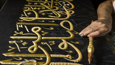 الرأي نيوز - تحت مروحة في القاهرة الإسلامية، يطرز أحمد عثمان قطعة قماش سوداء راسما حروف أية قرآنية بخيوط الذهب، على غرار أجداده الذين كانوا يصنعون كسوة الكعبة.