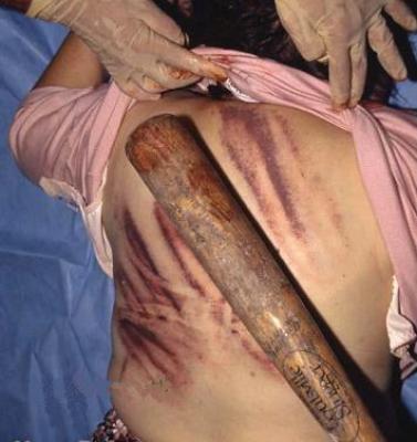 ويأتي طول كل مضرب بحوالي قدم تقريبا، وقد صممت مزخرفة وكتبت عليها رسالة تقول: 'لضرب السكارى والشرطة لن تتدخل'.