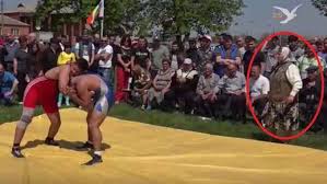 - اقتحمت مرأة عجوز حلبة مصارعة لتدافع عن حفيدها بعد أن أسقطه منافسه، خلال نزال بينهما ضمن مسابقة محلية تسمى "غوراش"، وتقام وفقا لقواعد المصارعة الرومانية، في منطقة روستوف.بدأ النزال وتصارع شابان، أحدهما يرتدي زيا أحمر والآخر أزرق، فيما بينهما حسب قواعد رياضة المصارعة، وانتهت الجولة الأولى بتقدم الأخير بنقطتين، وكان يجرى كل شيء على ما يرام، حتى سقط المصارع حفيد العجوز بالزي الأزرق على الأرض، وهنا اقتحمت الجدة، التي كانت تتأهب وتتربص بالخصم، أرض الحلبة ووجهت ضربة إلى رأس خصم حفيدها، ليتدخل الحكم ويوقف النزال، معلنا فوز المصارع بالزي الأحمر.