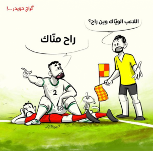 الرسمة أظهرت لقطة من مباراة الاردن والعراق والتي اصبحت "ترند" بعد انتهاء اللقاء بالتعادل السلبي