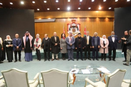 وبحضور عدد من رجال الأمن العام ومدير المركز الثقافي الملكي د. سالم الدهام ومدير عام دائرة المكتبة الوطنية د. نضال العياصرة رفع مقدم الحفل الإعلامي محمود الداوود أسمى آيات التهنئة والتبريك بهذه المناسبة العظيمة إلى جلالة الملك وسمو ولي العهد والأسرة الهاشمية وأفراد الجيش وكل مواطن أردني ومن يقيمون على أرض المملكة.