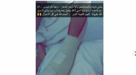 هذا ونشرت صورة لطفلتها كتبت عليها: "بنتي نايمة بالمستشفى وانا عندها .. دعواتكم لبنتي .. انا مو قاعده ترقع مره امي (الله يطول بعمرها) ومرة بنتي (اسم الله عليها) اللهم كافينا الشر .. الحمدلله في كل الأحوال".