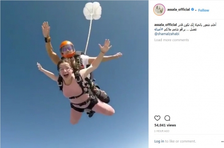 نشرت الفنانة السورية أصالة فيديو لابنتها الكبرى شام أثناء قيامها بمغامرة جريئة بالقفز من أعلى الطائرة بمظلة. ورغم خطورة هذه المغامرة إلا أن أصالة شجعت ابنتها بكلمات حماسية حيث كتبت معلقة: "أحلى شعور بالحياة إِنّك تكون قادر تفصل… براڤو شامي ملاكي”.