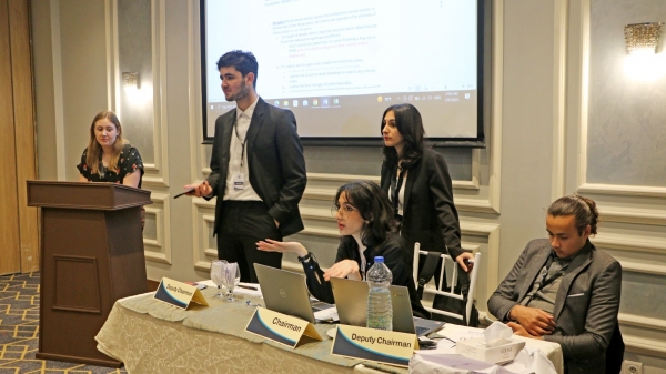كما أن حل النزاعات الدولية شّهِد اهتمامًا من قبل الحاضرين ما عمّق من الدور القيادي للطلبة وإمساك دفة تحليل النزاعات بموضوعية، واقتراح حلول إبداعية، تعزز من السلام والاستقرار، وأن ذلك استمر مع جلسة تمكين حقوق المرأة الداعية إلى تعزيز المساواة العادلة لتحقيق مجتمع أكثر إنصافًا وشمولية.