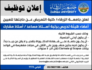 اعلان توظيف في جامعة الزرقاء