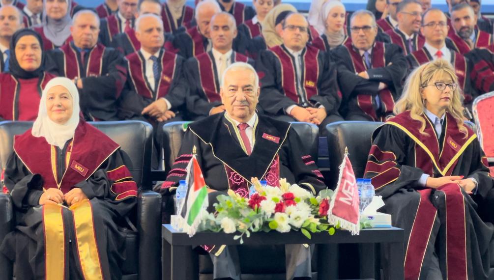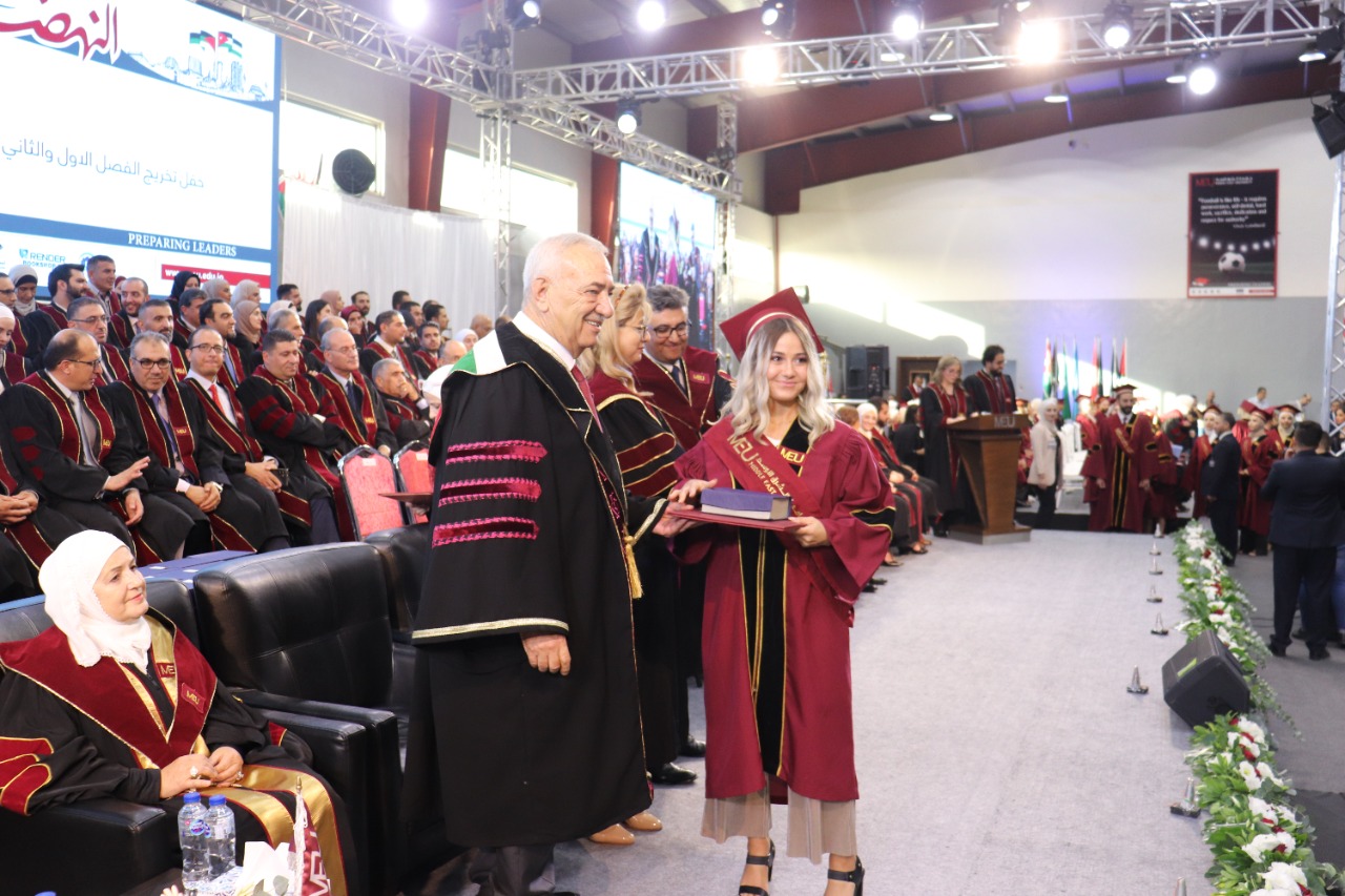 وحضر الحفل رئيسة هيئة المديرين الدكتورة سناء شقوارة وأعضاء الهيئة، ورئيسة الجامعة الأستاذة الدكتورة سلام المحادين، وأعضاء مجلس أمناء الجامعة، ومجلس العمداء، وعدد من المحلقين الثقافيين، وقيادات المجتمع المحلي، وأعضاء الهيئة التدريسية والإدارية، وأهالي الخريجين.