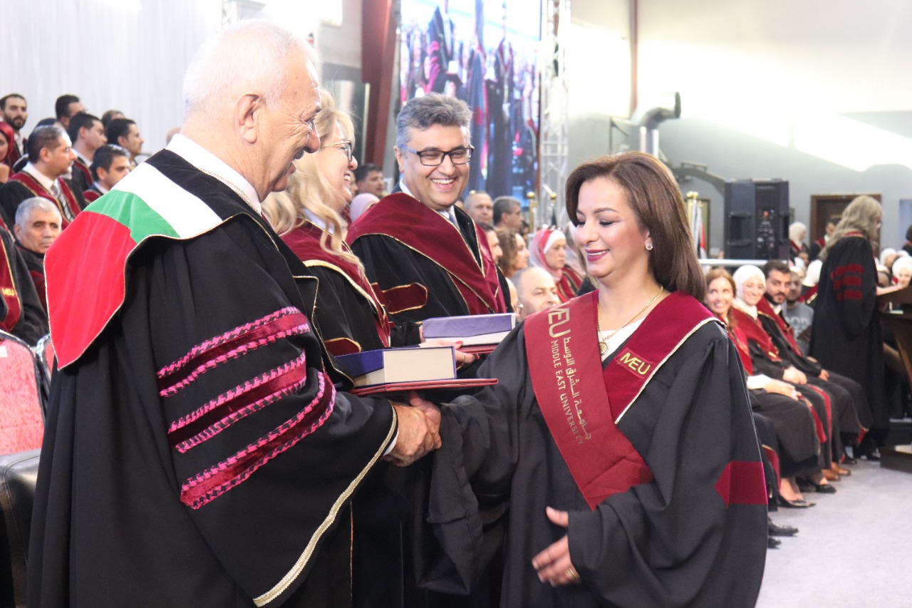 وبينت أن إنجازات الجامعة الكبيرة والمميزة نفخر بها، فقد حققنا مراتب متقدمة في التصنيفات العالمية، كما أن كليات الجامعة نالت شهادة الجودة المحلية بمستواها الذهبي، لتكون جامعة الشرق الأوسط الوحيدة من بين الجامعات الأردنية التي حققت مثل هذا الإنجاز، إضافة إلى الاعتماديات الدولية للعديد من برامجها؛ إذ إن الجامعة تنفرد على مستوى جميع الجامعات الأردنية بشراكات استراتيجية مع عددٍ من الجامعات البريطانية مثل جامعتيّ ستراثكلايد، وبيدفوردشير، طُرحت من خلالها العديد من البرامج المشتركة والمستضافة على مستوى البكالوريوس والماجستير والدكتوراة في مجالات الصيدلة، والأعمال، والإعلام، والترجمة.