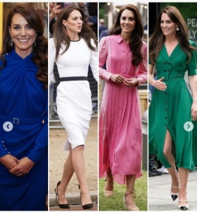 حيث أن كيت ميدلتون معروفة بحرصها على ارتداء أناقة اللون الواحد التي تضفي الكثير من الرقي إلى أي إطلالة. وهي تعتمد على الخطوط الكلاسيكية في القصات والتصاميم. وعلى مر السنين أكدت للجميع أنها لا تتردد في تكرار إطلالاتها مع تغيير بسيط في الأكسسوارات أو المجوهرات لأنها تدرك أن الأناقة في البساطة. وهي تهتم بمبدأ الموضة المستدامة.