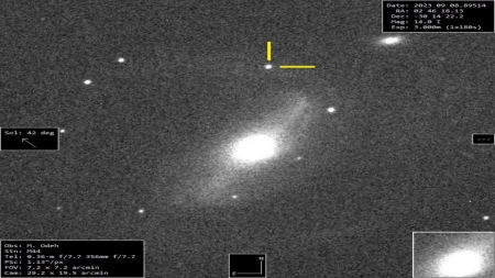 الراي نيوز - اكتشف مدير مركز الفلك الدولي وعضو الجمعية الفلكية الأردنية محمد شوكت عودة نجما متفجرا (سوبرنوفا) جديدا مساء الجمعة الماضي الموافق 8 أيلول 2023 بعد تسعة شهور من الرصد المستمر في مرصد الختم الفلكي في أبوظبي في مجرة NGC 1097 ( كالدويل 67)، وفق رئيس الجمعية الفلكية الأردنية عمار السكجي.