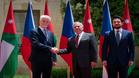 وأكد جلالة الملك عمق العلاقات بين البلدين والشعبين الصديقين، التي يصادف هذا العام مرور 60 عاما على تأسيسها، معربا عن حرص الأردن على تعزيز التعاون مع التشيك بمختلف المجالات.