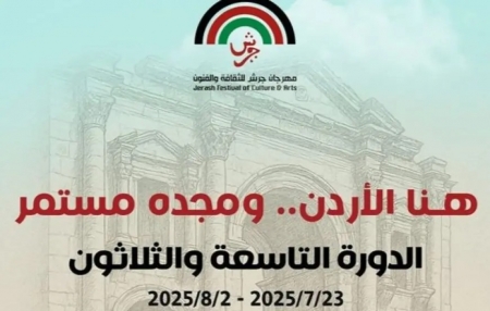تحت رعاية جلالة الملك عبد الله الثاني، تنطلق الأربعاء 23 تموز المقبل فعاليات الدورة 39 لمهرجان جرش للثقافة والفنون 2025، والتي تحمل هذا العام شعار: "هنا الأردن.. ومجده مستمر".