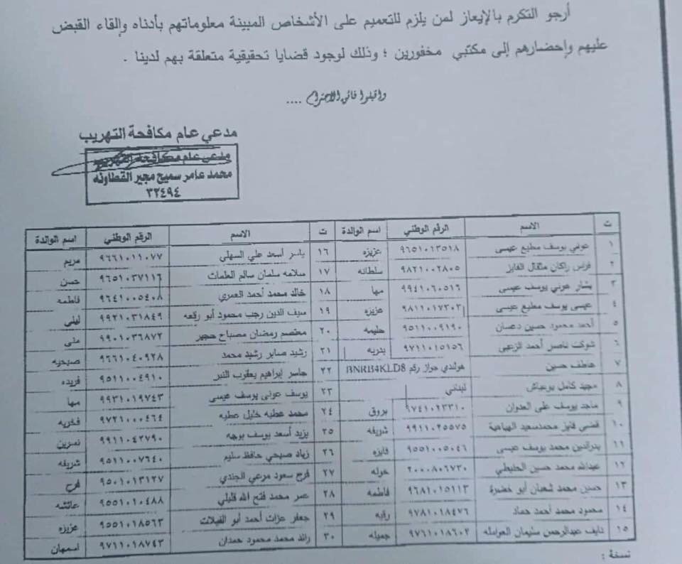 بالاسماء - 30 شخص متورط في قضية الدخان