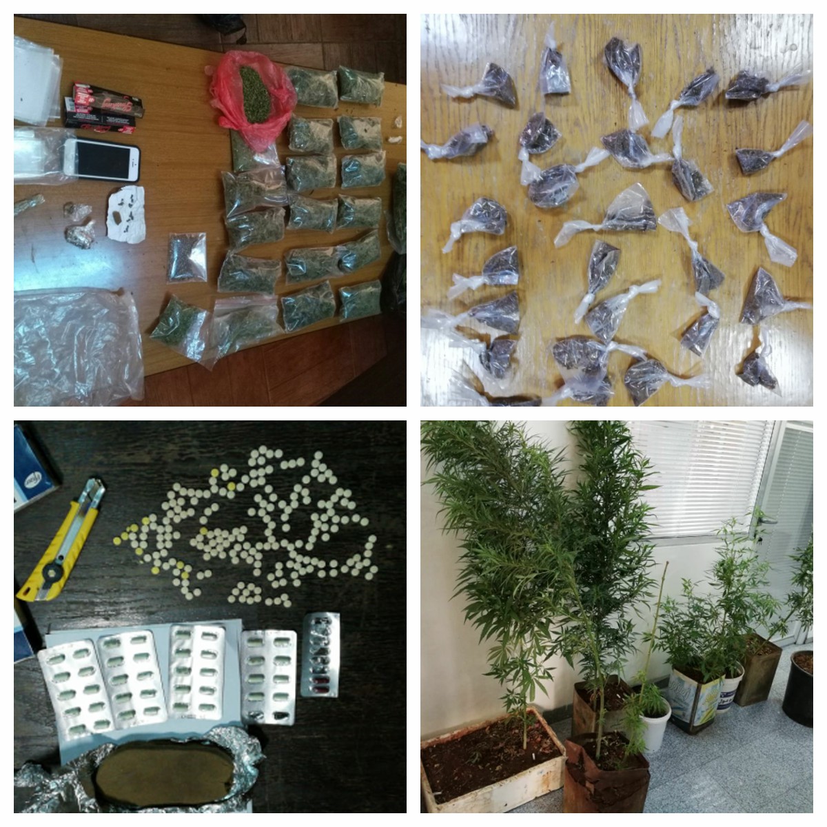 ومن خلال متابعة العاملين في ادارة مكافحة المخدرات لحائزي ومروجي المواد المخدرة في مختلف محافظات المملكة فقد تعاملوا خلال الايام القليلة الماضية مع عدد من تلك القضايا والتي كان ابرزها القاء القبض على اثنين من مروجي المواد المخدرة في احدى محافظات الشمال اثناء قيامهما ببيع كمية من تلك المواد وبتفتيشهما ضبط بحوزتهما 2000 حبة من حبوب الكبتاجون المخدرة وكمية من بودرة الحشيش الصناعي ، كما والقي القبض على شخصين اخرين بعد مداهمة احد المنازل في احدى محافظات الشمال بعد ورود معلومات حول استخدام ذلك المنزل لتجهيز مادة الحشيش الصناعي (الجوكر) وضبط داخل المنزل بعد تفتيشه على 27 كيس من تلك المادة فيما ان البحث جار عن ثلاثة اخرين توروطوا بالقضية. وفي محافظة اخرى من محافظات الشمال القي القبض على اثنين من مروجي المواد المخدرة في احد الاماكن العامة وضبط بحوزتهما كمية من الحبوب ومن مادة الحشيش المخدرة.