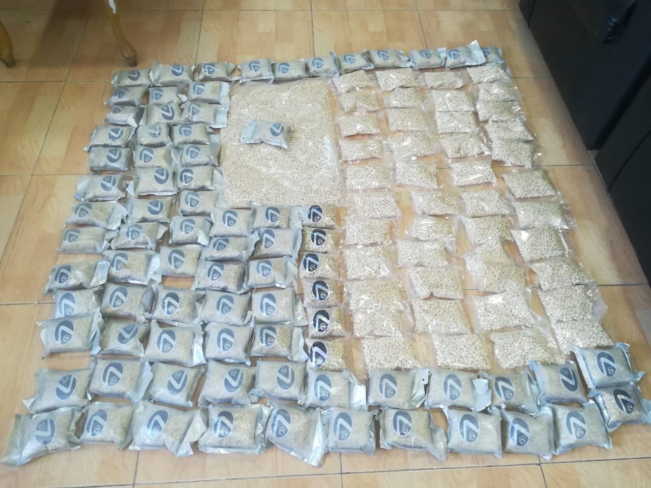 وفي احدى محافظات الشمال وعلى اثر متابعة معلومات حول حيازة شخصين من جنسية عربية لكمية كبيرة من الحبوب المخدرة ونيتهما بيعها حيث تم تحديد مكان تواجدهما والقي القبض عليهما وضبط بحوزتها ٣٠ الف حبة من حبوب الكبتاجون المخدرة . وفي محافظة اخرى من محافظات الشمال القي القبض احد المروجين داخل مركبته وبحوزته كمية من مادة الحشيش الصناعي المخدرة (الجوكر) المجهزة للبيع والترويج.