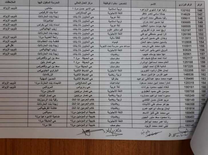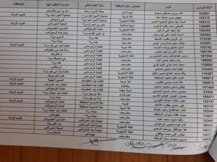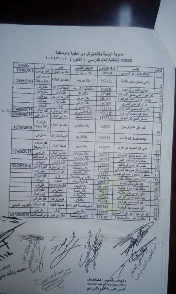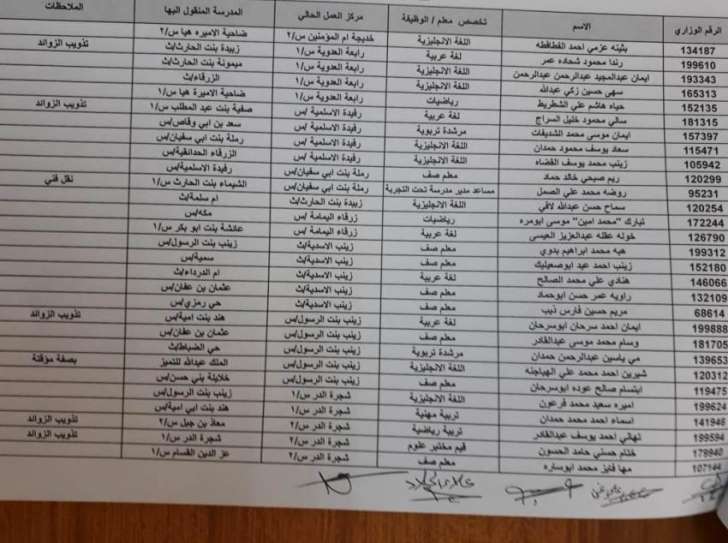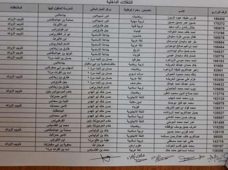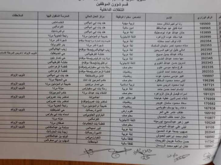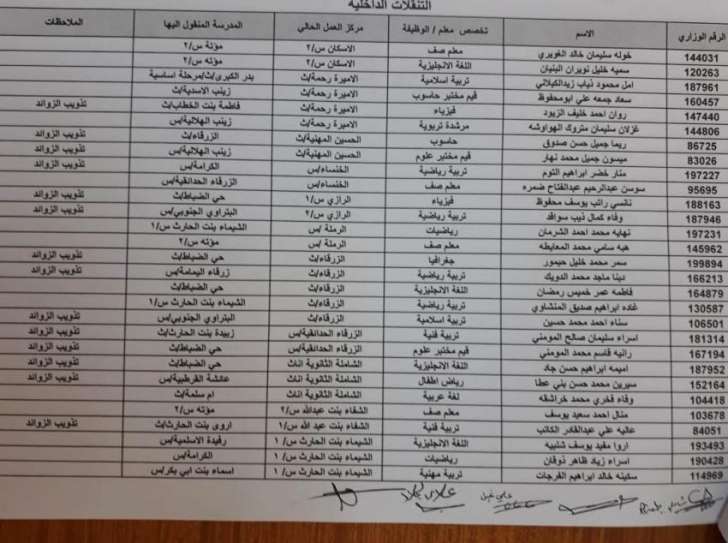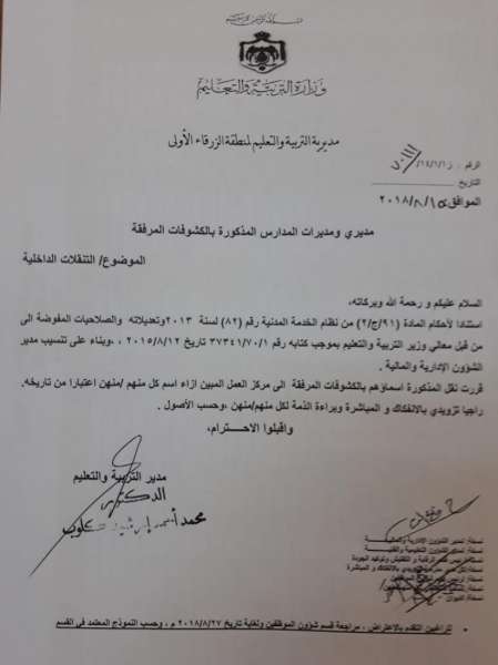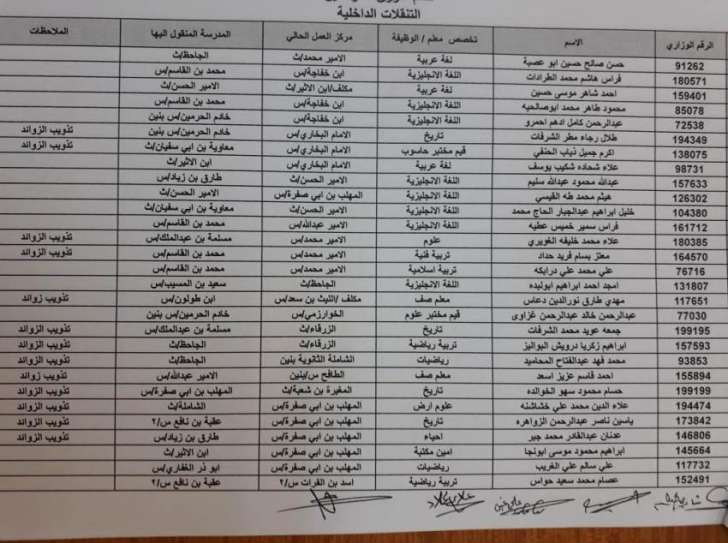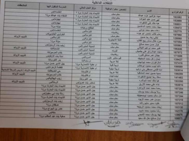 قررت وزارة التربية والتعليم اجراء تنقلات داخلية فيها لمديري ومديرات مدارس وبناء على تنسيب مدير الشؤون الادارية والمالية، وتاليا الاسماء:
