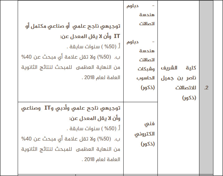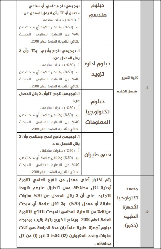 أ. الذكور من حملة شهادة الثانوية العامة الناجح وذلك لحساب كليات المجتمع ضمن برنامج الدبلوم الشامل والبرنامج الفني وبشروط معينة لهذا العام 2018 .