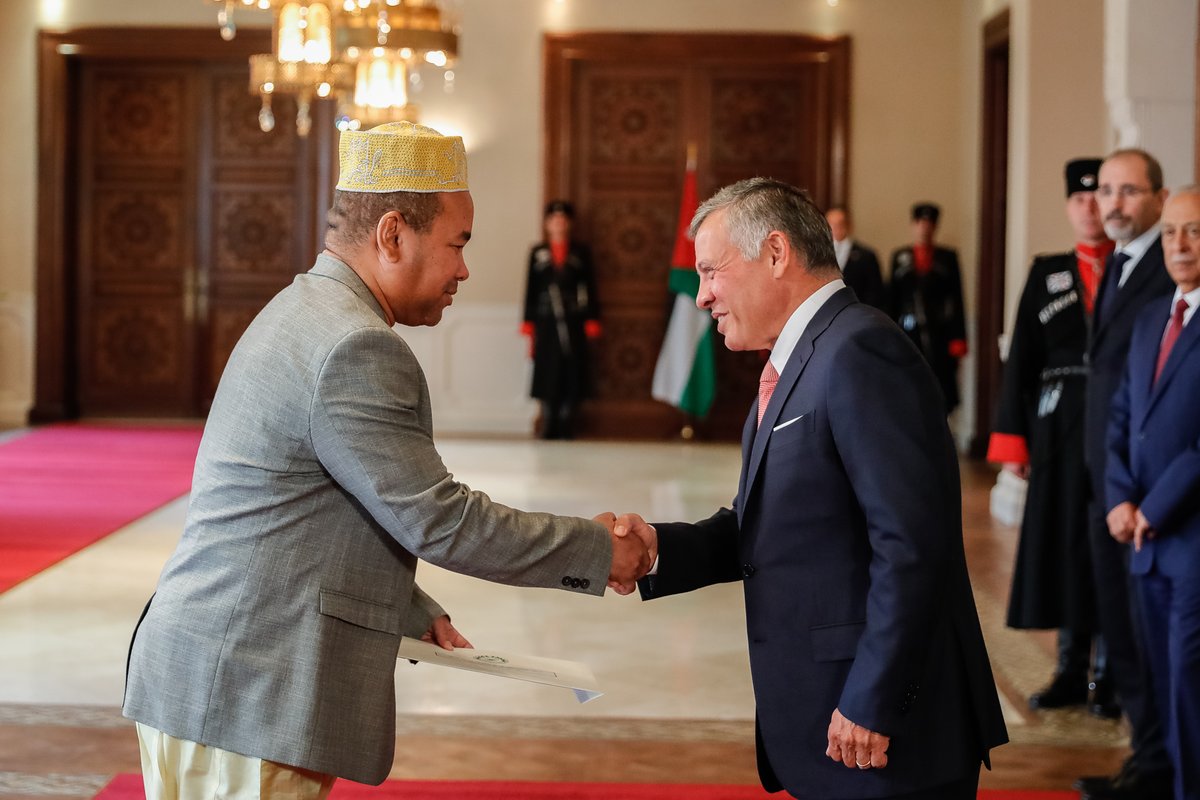 فقد تقبل جلالة الملك عبدالله الثاني أوراق اعتماد كل من سفير دولة الكويت عزيز رحيم مزيد الديحاني، وسفير الاتحاد الكونفدرالي السويسري لوكاس جاسر، وسفير جمهورية الفلبين أكمد عطاالله سكام، وسفير دولة إسرائيل أمير ويسبورد، وسفير جمهورية القمر المتحدة غير المقيم الحبيب عباس عبدالله، وسفير جمهورية نيبال الفيدرالية الديمقراطية غير المقيم هبندرا برصادا أريال.