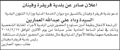 وبحسب ديوان الخدمة، فإن كل من يتخلف عن الحضور يعتبر مستنكفا عن التعيين، داعيا اياهم الى احضار الاوراق الشخصية اللازمة.