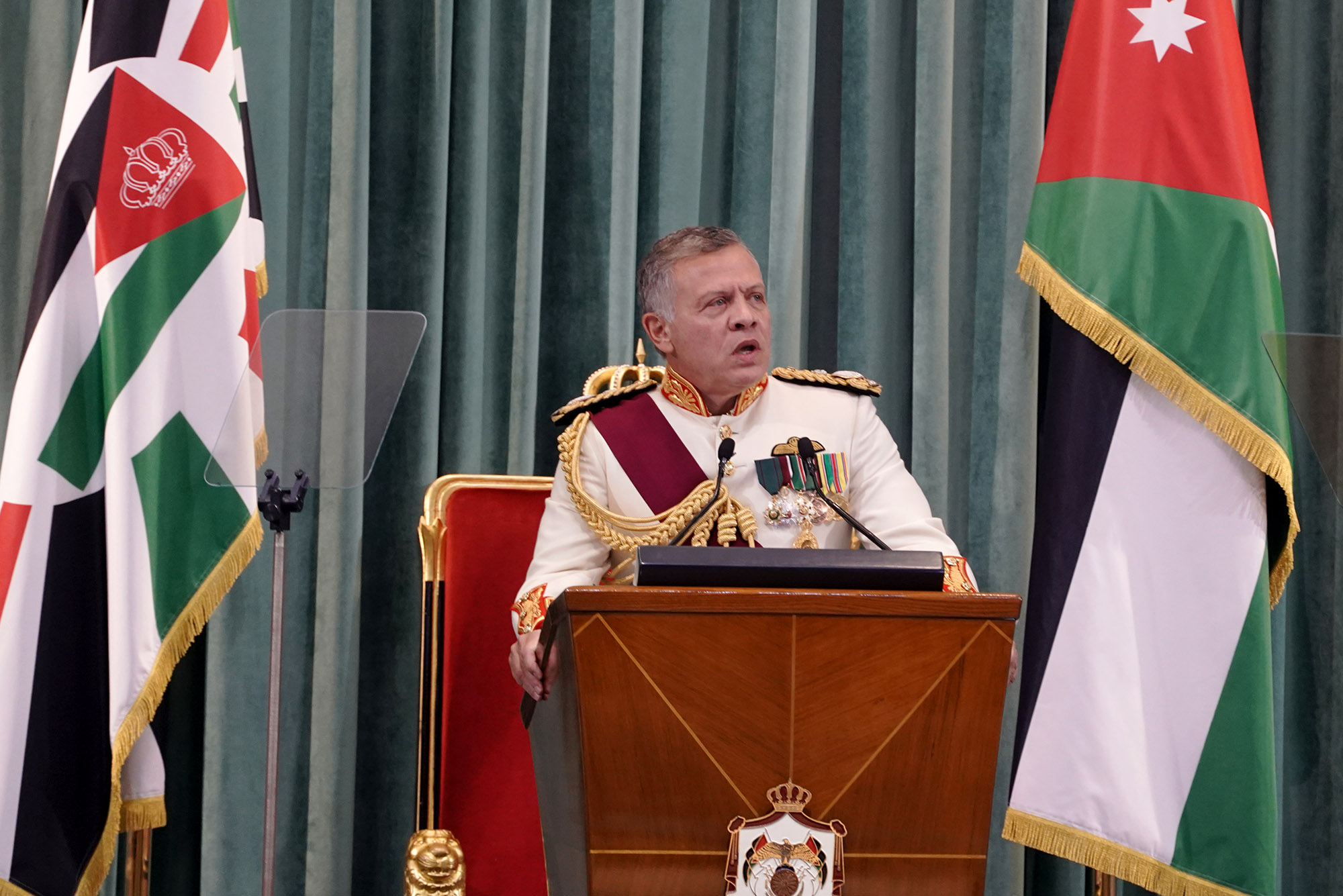 وصل الموكب الذي يقل جلالة الملك إلى مبنى مجلس الامة عند نحو الساعة 11:50 ظهراً.