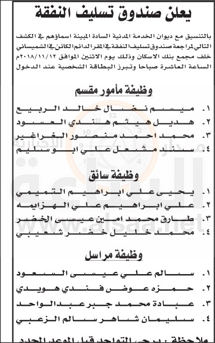 كما دعا صندوق تسليف النفقة التالية اسماؤهم: