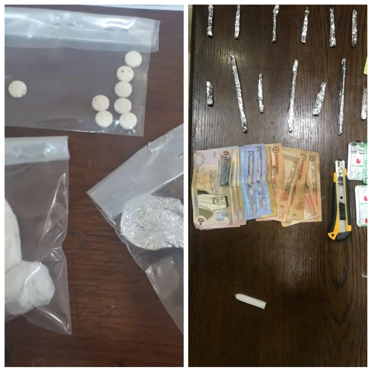 فيما تم مداهمة منزل احد المروجين في منطقة البقعة والقي القبض عليه وبحوزته 314 حبة مخدرة وقطع من مادة الحشيش المعدة للبيع ، وفي محافظة المفرق القي القبض على شخص من جنسية عربية وبحوزته حبوب مخدرة ، وشخص اخر بحوزته قطع من مادة الحشيش المعدة للبيع .
