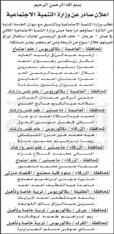 كما دعت بلدية ناعور التالية اسماؤهم لمقابلات.