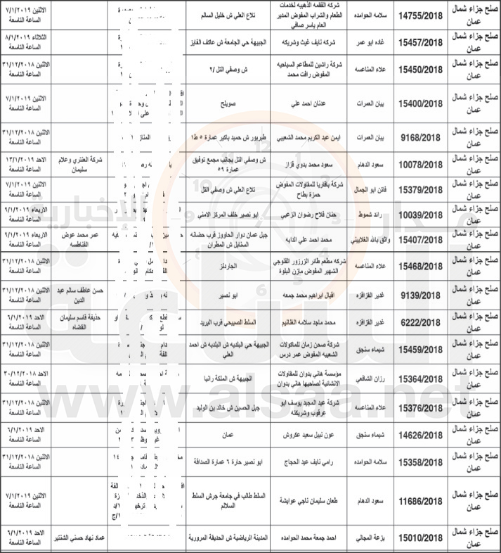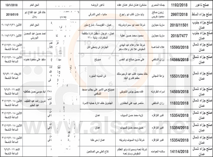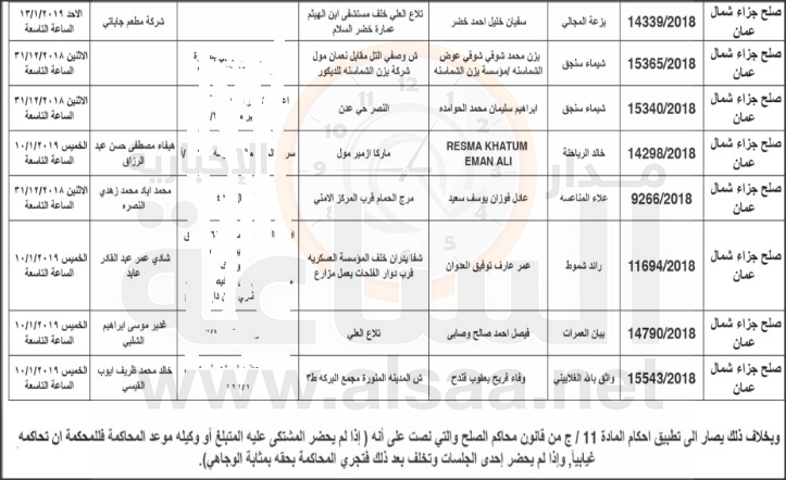 مذكرات تبليغ مواعيد جلسات محاكمة لمشتكى عليهم في الأردن (أسماء)