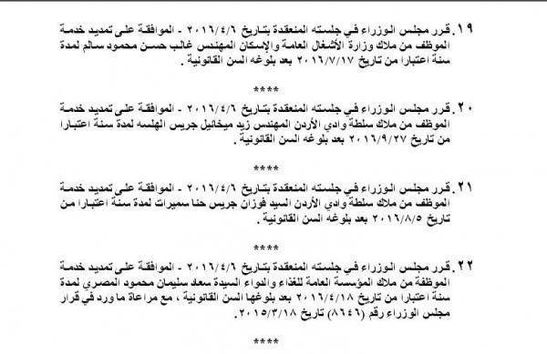 تمديد عمل عدد من الموظفين بعد بلوغهم سن التقاعد وتاليا اسماءهم