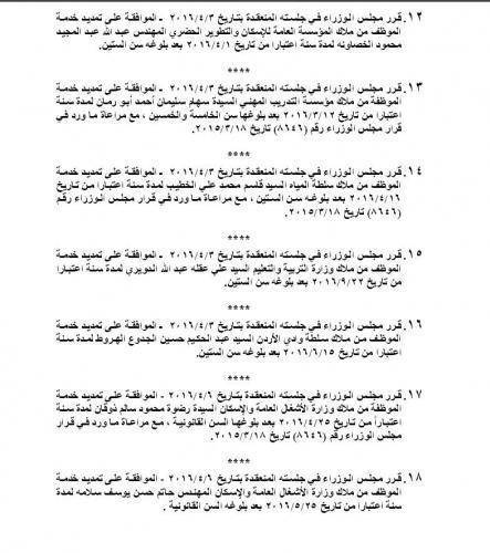 قررت الحكومة تمديد عمل عدد من الموظفين بعد بلوغهم سن التقاعد وتاليا اسماءهم .