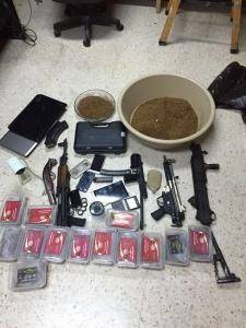 واضافت ادارة الاعلام الامني انه بعد انهاء المداهمة والقاء القبض على ذلك المطلوب جرى تفتيش منزله تفتيشا دقيقا حيث ضبط بداخله على خمسة اسلحة نارية اتوماتيكية وفردية اضافة الى 13 علبة بلاستيكية بداخلها مادة الحشيش الصناعي المخدر ( الجوكر ) (يقدر وزنها بخمسة كيلو غرامات ) اضافة الى كف من مادة الحشيش المخدر ومركبة تستخدم لترويج المواد المخدرة وبوشرت التحقيقات مع المقبوض عليه تمهيدا لاحالته لمصادر طلباته .