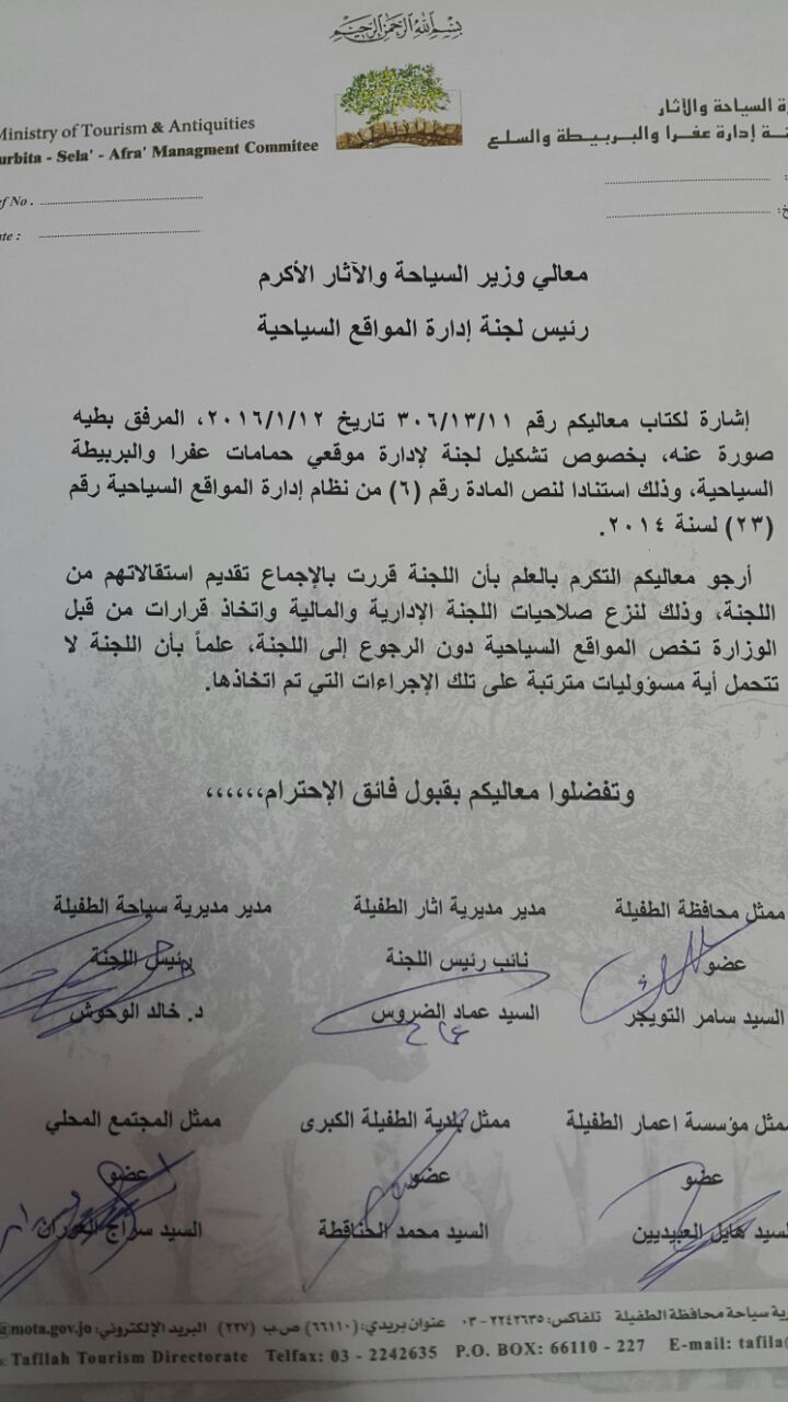 استقالة جماعية للجنة إدارة موقعين سياحيين - وثيقة