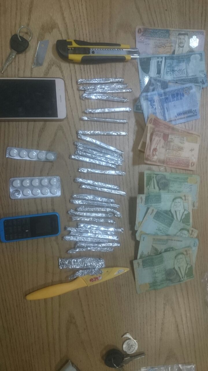 كما تمكنت اقسام مكافحة المخدرات في مختلف محافظات المملكة من القاء القبض كذلك على عدد من مروجي المواد المخدرة وضبط ما بحوزتهم من مواد، حيث تمكن العاملون في قسم المفرق وبعد جمع المعلومات حول احد الاشخاص المشبوهين بتلك القضايا من ضبطه