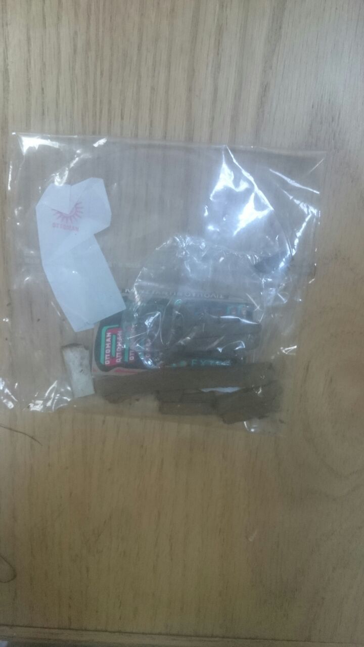 متلبساً داخل مركبته اثناء ترويجه للمواد المخدرة وبحوزته 1 كغم من مادة الحشيش المخدرة.