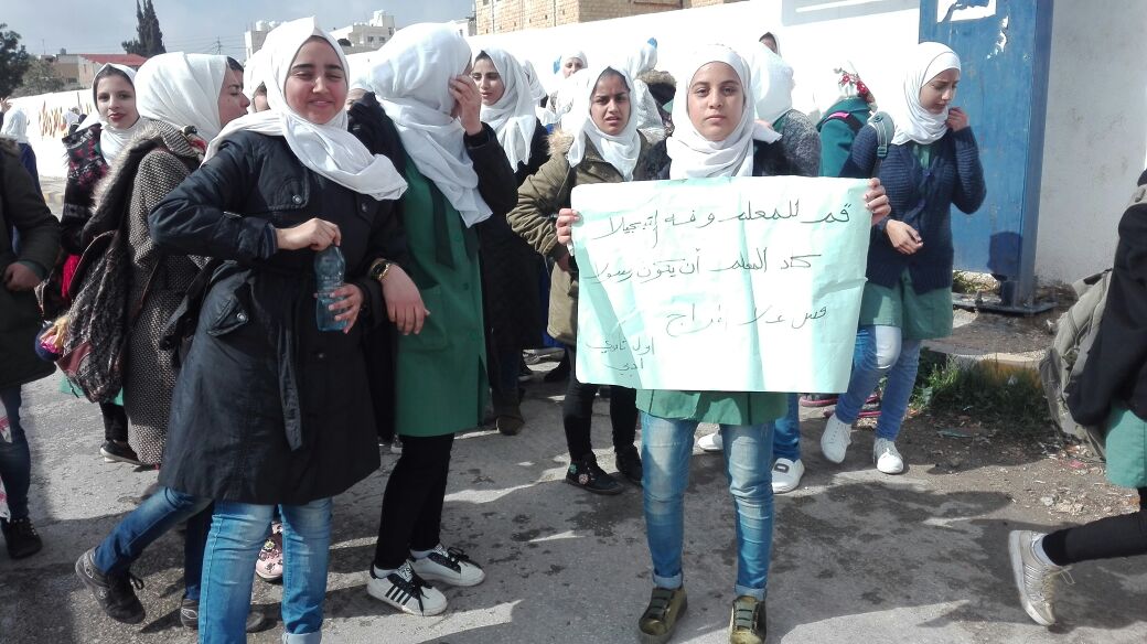 مادبا : اعتصام لطالبات احتجاجا على نقل معلمتهم .. صور