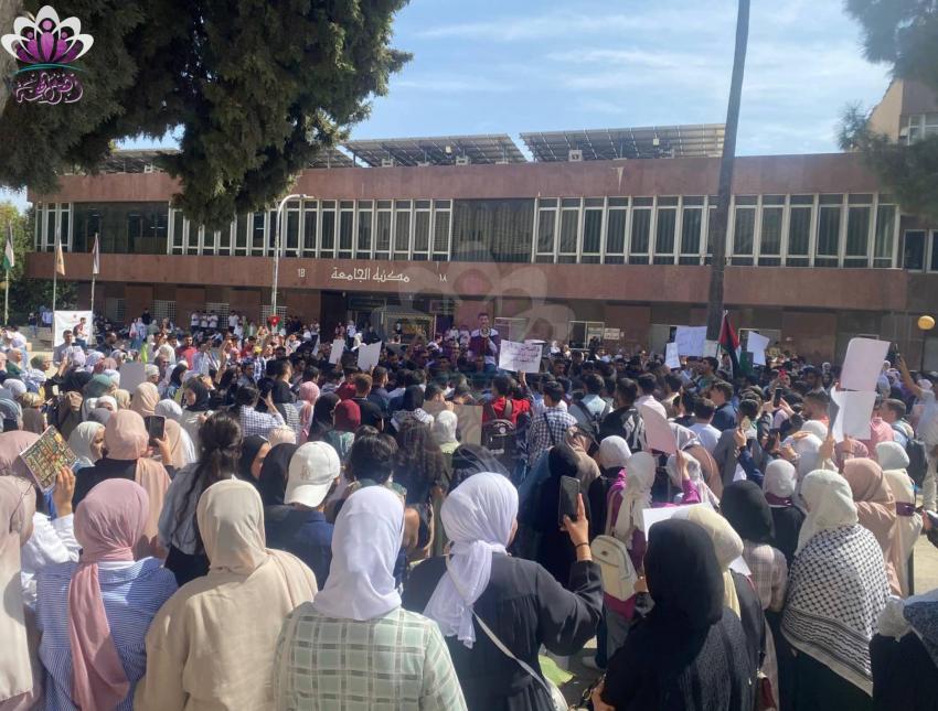أقام طلاب الجامعة الأردنية في يوم دوامهم الأول فعالية تضامنية مع المقاومة الفلسطينية في قطاع غزة، وذلك امام مكتبة الجامعة.