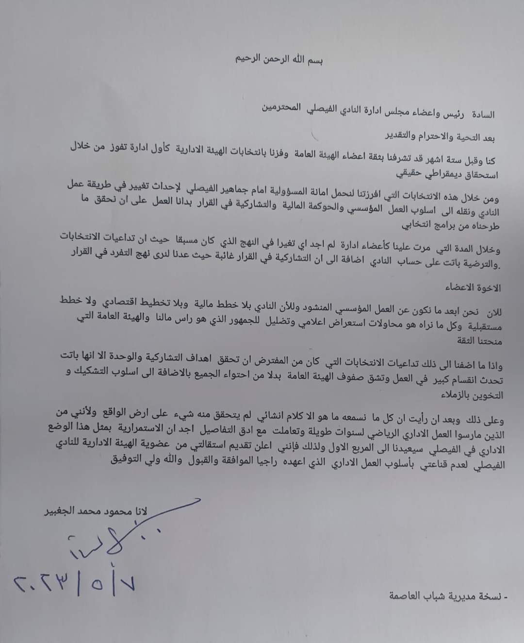 الراي نيوز - قدمت عضو مجلس ادارة النادي الفيصلي لانا الجغبير استقالتها من مجلس الادارة لاسباب عدم استطاعتها الاستمرار بهذا الاستعراض على حد قولها