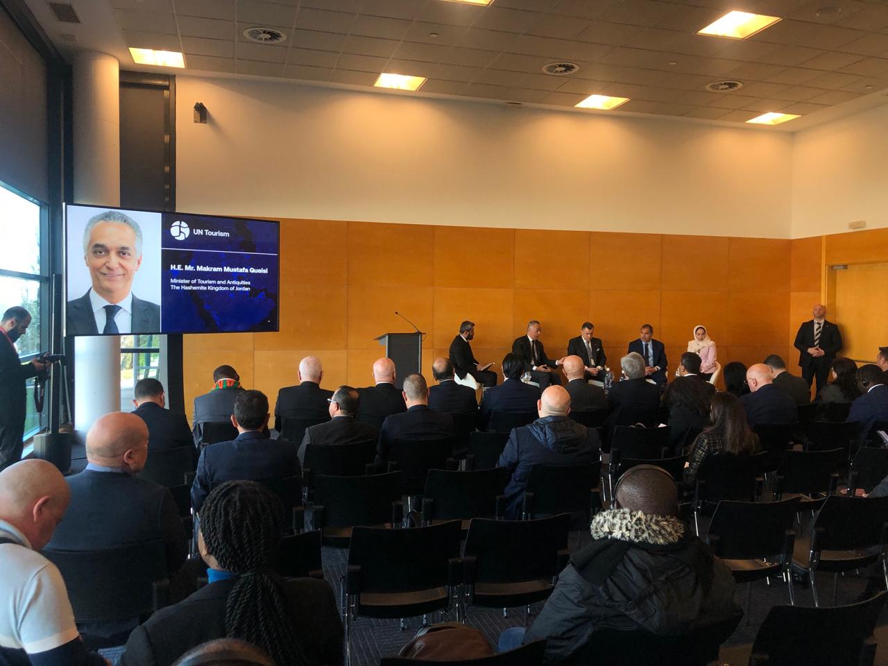 وشارك القيسي مع وزيري السياحة المصري و البيروفي، في جلسة حوارية نظمتها الأمم المتحدة للسياحة حول السياحة الإقليمية في زمن الأزمات والبحث عن الأسواق البديلة والبرامج المشتركة بين دول الإقليم، بحضور سفراء وأعضاء وفود مشاركة في المعرض.
