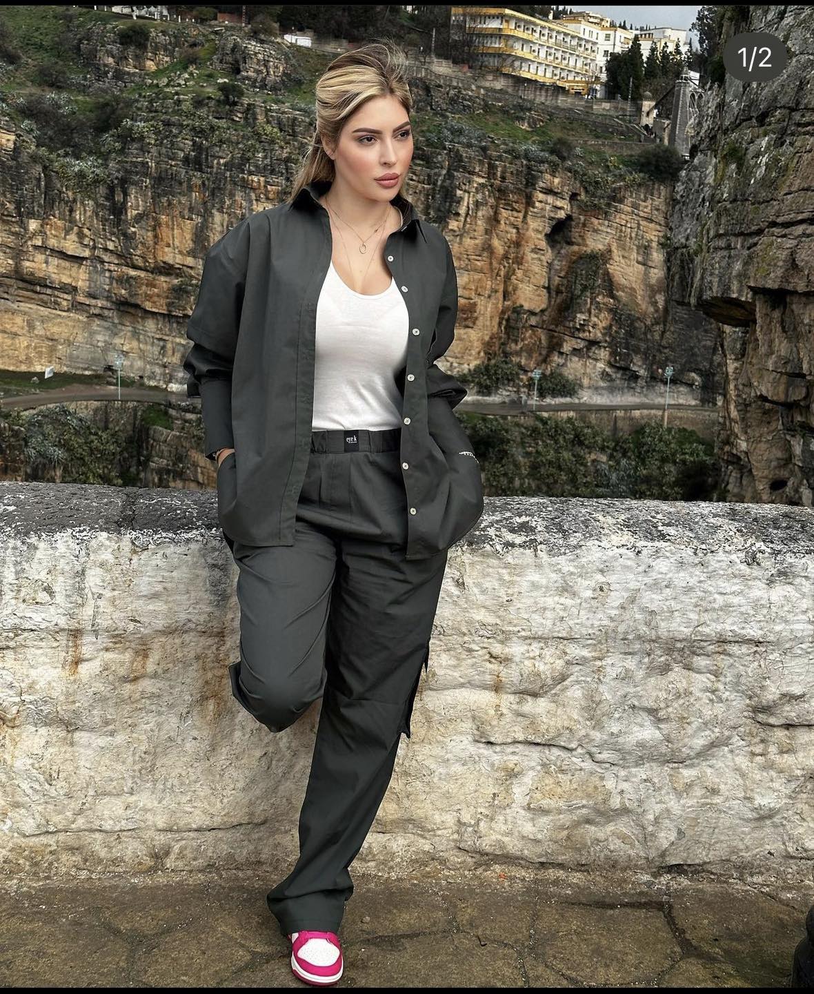 وبدت مريم الدباغ بإطلالة كاجوال، حيث ارتدت بادى مجسم باللون الاسود كشف عن جمالها ونسقت عليه بنطال أسود، واختارت ترك خصلات شعرها الاشقر منسدلة ووضعت لمسات ناعمة من المكياج مع لون النود في الشفاه