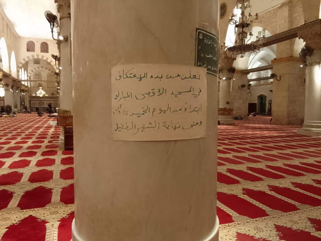 الرأي نيوز  - المرابطون يفتحون باب الاعتكاف في المسجد الأقصى في الليلة الثانية من رمضان؛ وينتظرون كل محبٍّ ومشتاق لينضم إليهم في اعتكافهم.