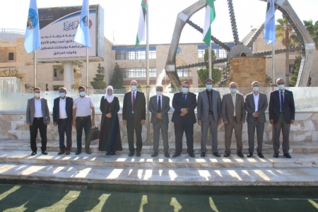 وضم الوفد رئيس الجامعة الدكتور امجد برهم، وعميد كلية الطب وعلوم الصحة الدكتور فوزي الرازم، و رئيس دائرة الرياضيات والفيزياء التطبيقية الدكتور عايد عبد الغني، والدكتور محمد العدم، عضو هيئة التدريس في الرياضيات والفيزياء التطبيقية، والدكتور نسيم اقطيط، عضو هيئة التدريس في الهندسة، وكان في استقبالهم رئيس الجامعة بالوكالة الأستاذ الدكتور نضال الرمحي، ونائب الرئيس للشؤون الادارية الاستاذ الدكتور نضال عيشة، وعدد من عمداء الكليات والمراكز.