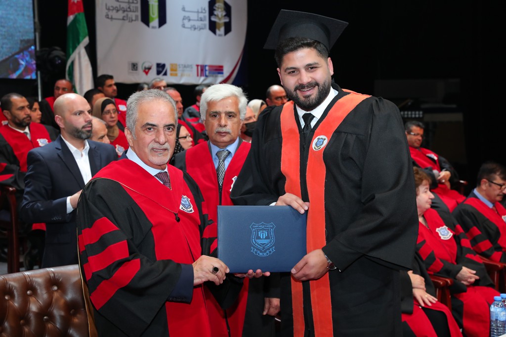 وكان الاستاذ الدكتور ساري حمدان رئيس الجامعة قد رعى حفل التخريج بحضورعدد من اعضاء مجلس الامناء ونائب رئيس هيئة المديرين الاستاذ عمر الحوراني وأعضاء الهيئة والعمداء واعضاء الهيئتين التدريسية والادارية والمدعوين
