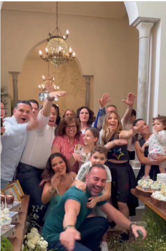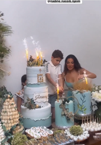 كما ظهرت خلالها ترقص إلى جانب صديقتها عارضة الأزياء نتالي فضل الله مع ولديها جيوفاني وهيفين، وخطيبها أيضاً الذي حرص على الرقص مع جيوفاني احتفالا به